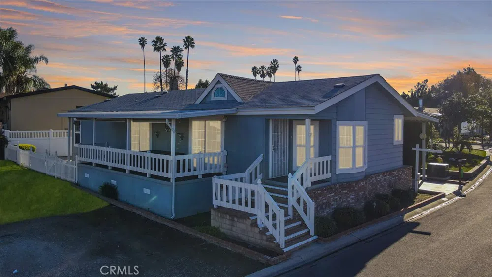 Lake Los Serranos Gem: Active 55+ Living at Its Finest! Nestled in the tranquil Lake Los Serranos community, discover this immaculately maintained 2004 manufactured home, perfect for the active 55+ lifestyle. This residence truly feels like home! Spanning a generous 1,500 SF, it features 3 spacious bedrooms—one of which can effortlessly double as a home office or craft room. With abundant windows and vaulted ceilings throughout, the space is light and bright. Enter the spacious family room, which is not only centered around a cozy fireplace—perfect for those chilly evenings—but also boasts a sliding door leading directly to the attached covered deck. This seamless transition from indoor to outdoor space provides an open and inviting ambiance. The family room flows naturally into the dining area and kitchen, making it an ideal setting for both relaxed evenings and entertaining family and friends. The well-appointed kitchen boasts white cabinetry with ample storage space, and all the essential appliances are included for your convenience. The primary suite stands out as a serene haven, equipped with a spacious walk-in closet, dual sinks, a walk-in shower, and additional storage space. The secondary bedroom also offers its own walk-in closet and direct access to the expansive covered deck, amplifying its connection to the outdoors. Speaking of the outdoors, savor moments on the large covered deck—ideal for your morning coffee or watching the sunset. Pull-down shades offer privacy, and with the bonus of a green belt on one side, you'll enjoy peace without immediate neighbors. The home's exterior is just as captivating, with charming brick accents on the front porch and steps. A 10’ x 12’ shed offers extra storage, and parking is a breeze with a 2-car covered carport and plenty of guest spots both in front and beside the property. Moreover, it's located just a block away from the lake, a welcoming clubhouse, RV storage, and a pristine pool. Amenities include a 1-year home warranty, dual-pane windows, faux wood blinds, ceiling fan lights, a new water heater, and an indoor laundry room uplift daily living. Its prime location is 1 block from the lake and clubhouse and a few minutes from the 71 freeway, Orange County, and a rich array of shopping and dining venues. Come and join this vibrant community, and envision this delightful abode as your forever home!