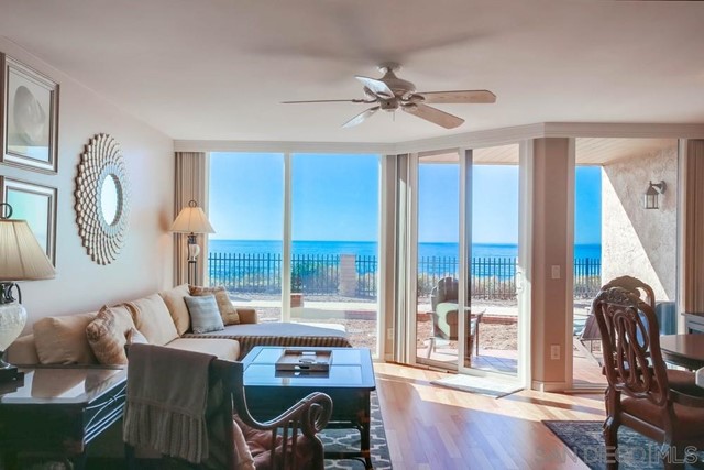Vacation Rental - rates vary by season. Wake up to sunshine and blue ocean views! Enjoy resort-style living in this beautifully appointed 1-bedroom condo overlooking the Pacific Ocean. Done in a tasteful beach style, this unit is bright, open, and full of every amenity you need. The spacious full kitchen features plenty of cabinet storage, a large fridge/freezer combo, and stainless steel appliances. Enjoy meals with an ocean view at the dining table, and then walk out the sliding glass doors onto the quiet clifftop path that meanders through the community. At the end of the day, you can unwind in the California King bed or take a long shower in the spa-like bath. This complex offers private beach access for guests and is close to the Beachwalk Center, which has food, coffee, dry cleaning services, and more. Fletcher Cove is just a short distance away, too! Here you’ll find a playground, grass, picnic tables, and access to one of North San Diego County’s most beautiful beaches. All this plus a great location close to everything Solana Beach and Del Mar has to offer, from Cedros Design District to the famous Belly Up Tavern to the Del Mar Racetrack, and so much more!