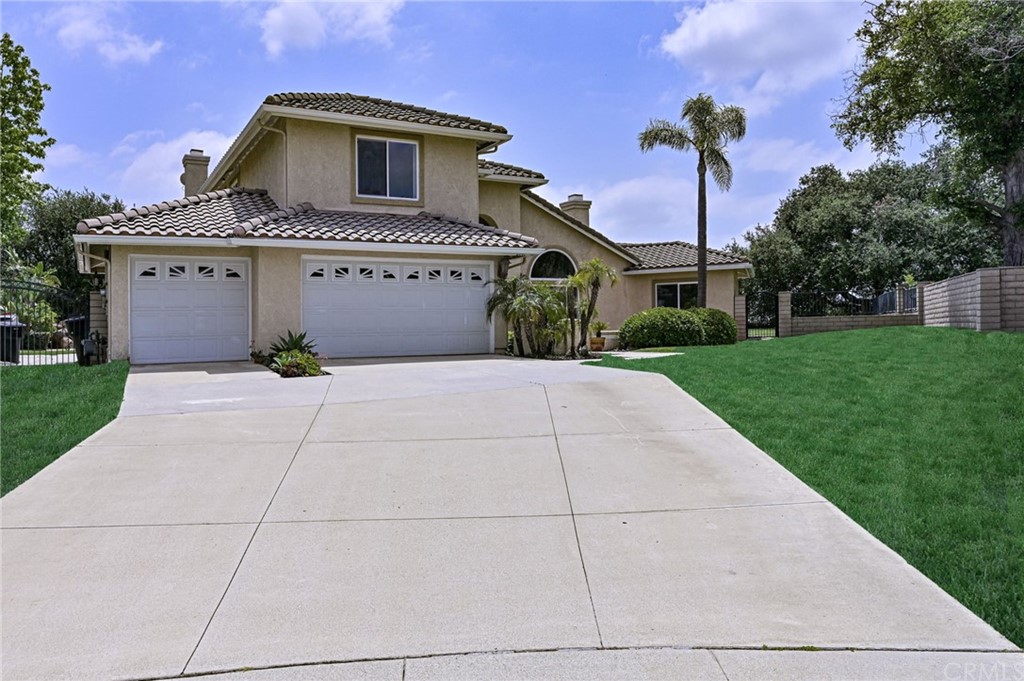 FORMER MODEL. Beautiful 2 story pool home located in Carriage Hills, one of Chino Hills most sought after neighborhoods. Excellent location with easy access to Orange County. Features include 5 spacious bedrooms, 3 full baths, 3 fireplaces, 3 car garage, 3700 sqft (including room addition), enormous lot- 38,400 sqft, pool, spa and located on private cul-de-sac with view. Additional features and improvements include: SOLAR power (paid for and included), new interior paint, remodeled kitchen with custom cabinets, granite counters, double ovens, pantry with dirty kitchen and coffee bar, remodeled baths, custom wrought iron staircase, new windows and slider doors, ceiling fans throughout, 2nd family room addition, master suite with fireplace, remodeled master bath with custom walk-in shower with dual shower heads and private balcony to enjoy the view. Downstairs bedroom is currently used as office. Spacious rear yard includes a pool and spa with rock water fall and grotto. The community is located near Western Hills private golf course. Chino Hills is known for its great schools, parks and rolling hills. Enjoy shopping and dining located at The Shoppes. This is a must see property. Call today for appointment to view this beautiful home.