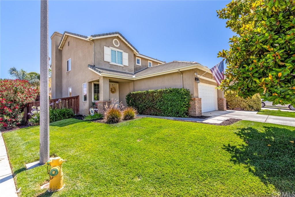 Beautiful Menifee home situated in the desirable Menifee Greens community with Low Taxes and No HOA! This property features upgraded LVP flooring downstairs, neutral designer paint, custom wood blinds throughout, and an open and airy floorplan. This 3-bedroom, 2.5-bathroom home offers a large eat-in kitchen with new stainless-steel appliances and tons of cabinets that provide ample storage. The kitchen is open to the family room, complete with a cozy fireplace. Upstairs you will find a spacious owner's suite with direct access to an en-suit that includes a walk-in closet, dual sink vanity, walk in shower and jetted soaker tub. 2 additional guest bedrooms are located upstairs as well as a loft that provides additional living space. The loft can easily be converted into a 4th bedroom, office, or movie room. This home is equipped with an energy efficient thermostat that you can control from your smart device. The low maintenance backyard is complete with artificial turf, an alumawood patio cover with built-in fan, and concrete slab patio and dog run. This property is conveniently located close to schools, shopping, dining and FWY access. This home has great curb appeal and is A MUST SEE!