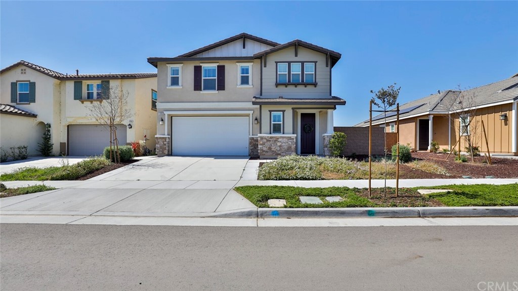 How would you like a yard to go with your home? Welcome home to Countryside in Ontario Ranch. Your 2,543 square foot home is spacious from the minute you walk with 4 bedrooms, a loft, and 4 bathrooms including a bedroom and bathroom downstairs! The kitchen has beautiful, upgraded quartz countertops, glass tile backsplash with contemporary white cabinets that complement the stainless steel appliances. Enjoy amenities such as a walk-in pantry, laminate wood flooring downstairs, a 100% energy-star rated home, high-efficiency windows, LED lighting throughout, white shutters throughout, and a solar lease to keep your electricity bills at bay. The generously-sized and landscaped backyard has a 12' x 32’ Alumawood patio cover, ceiling fan lights, and low-maintenance landscaping! Enjoy the nearby park with open play and gathering areas, picnic tables, biking, and walking trails. Enjoy playing golf at the nearby Whispering Lakes Golf Course in addition to having dining, shopping, and entertainment options at Victoria Gardens and Ontario Mills shopping center. Close proximity to the 15, 10, 60 freeways, Metrolink stations, and Ontario International Airport.