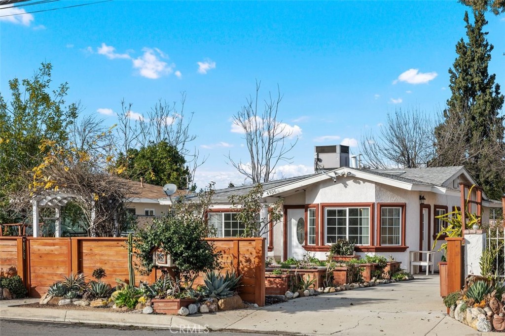 Just minutes away from Chaparral Elementary and Los Serranos Park is this delightful 4 bedroom, 2 bathroom home in a quiet neighborhood of Chino Hills. Walk under the beautiful arched pergola into the spacious front yard showcasing an impressive and abundant garden. This space is truly a gardener’s paradise boasting over a dozen raised garden beds equipped with drip irrigation and several fruit trees. You can only imagine how luscious and green this area is during peak season. As you enter into the 1,228 square foot, single-level home you are welcomed by the light and bright family room that is open to the updated kitchen and eat-in dining area. The well-appointed kitchen features newly installed white cabinets, subway tile backsplash, butcher block countertops, stainless steel appliances and a mobile kitchen island cart with extra storage. The dining area is right off the kitchen with great views of the thriving garden. The inviting family room features recessed lighting and a charming bay window bench. Down the hallway is where all of the bedrooms and bathrooms can be found. Your master bedroom has recessed lighting, a mirrored closet, and an ensuite bathroom with a shower in tub combination. The remaining three bedrooms include ceiling fans and share the hallway guest bathroom with a shower in tub combination. Ample parking can be found in the attached 2-car garage or along the extensive concrete driveway that can easily store a large RV or boat. The exterior shed has been set up with electricity and insulation. This is a great opportunity for first time homebuyers or young families looking for a great starter home.