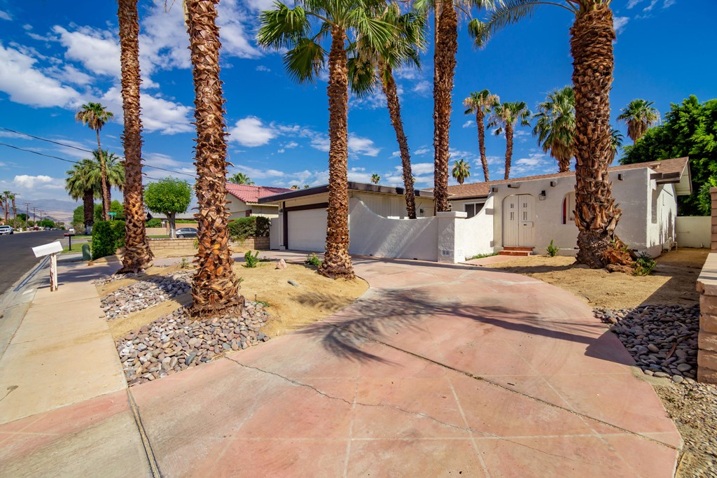 Clean, Bright & Airy... Lowest priced private pool in PDCC. Fully renovated with a Spanish-contemporary design that have been beautifully executed throughout. This home has a fantastic curb appeal, features desert landscaping, A Spanish tiled walkway/courtyard and a gated patio area. This 3 bedroom & 2 designer custom full baths has a great open floor plan with all new windows and sliders. The kitchen has been beautifully updated with a peninsula, breakfast nook, dinning area, a stunning backsplash & stainless steel appliances. The living area has a great accent wall, its beautiful with a clean design...So many upgrades. NEW: doors, plumbing, electrical, appliances, interior paint, new exterior paint, newer AC system, flooring (carpet & laminate), new epoxy garage floors, new & updated cabinets, new hardware and fixtures and the list goes on.... The oversized double car garage is attached, drywalled with newly epoxy floors. The sparkling Pool was recently re-plastered with pebble-tec finish to enjoy on those hot summers days while relaxing with family & friends! There is also room for RV/Toys parking with the circular driveway. A must preview ASAP as low inventory will have this home sold fast....!!!! Great Investment Opportunity